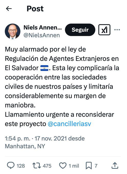 #Comunicado| Exhortamos a la población salvadoreña y a la comunidad internacional, relatores de derechos humanos, embajadas, países amigos e instancias internacionales orientadas a la protección de derechos, a condenar esta Ley de Agentes Extranjeros… pic.twitter.com/G56dGfpuJT