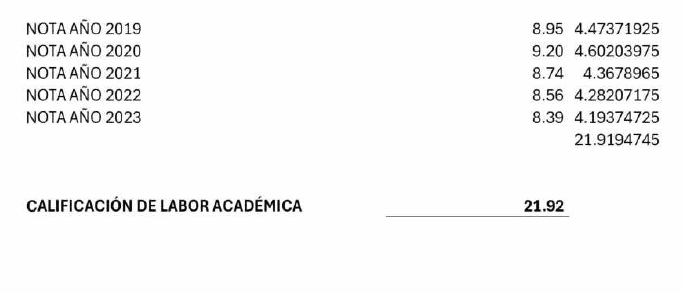 El informe del CACPA detalló que Pereira superó los requisitos para ascender a Profesor Universitario II (PU II). En Labor Académica, obtuvo 21.92 puntos para su desempeño de 2019 a 2023, con evaluaciones estudiantiles que fluctuaron entre 8.95 a 9.20 en una escala de 10. En Tiempo de Servicio, acumuló 5 años a tiempo completo, equivalentes a 5 puntos (frente a 4 exigidos).